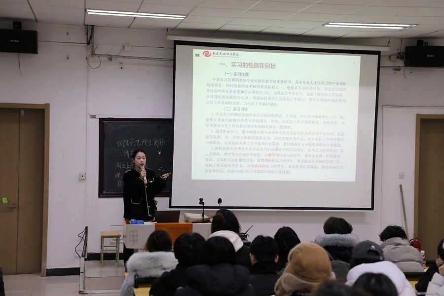 康伟老师围绕实习与就业核心安排展开详细讲解。她结合舞蹈行业发展趋势,系统介绍了实习就业的多元领域,涵盖舞蹈编排、演出策划、艺术教学辅导等多个方向,引导同学们结合自身兴趣特长与职业规划,精准选择实习单位。会上,发放实习就业指导资料,康伟老师细致解读了实习就业相关表格的填写规范,现场指导同学们梳理实习前准备要点,并全面推介了学院即将开展的各类实习就业资源与机会,并鼓励同学们主动出击、积极拓展岗位渠道,科学布局职业发展路径,在实习实践中积累经验、增长才干,为顺利就业积蓄力量,确保实习、就业工作有序推进。