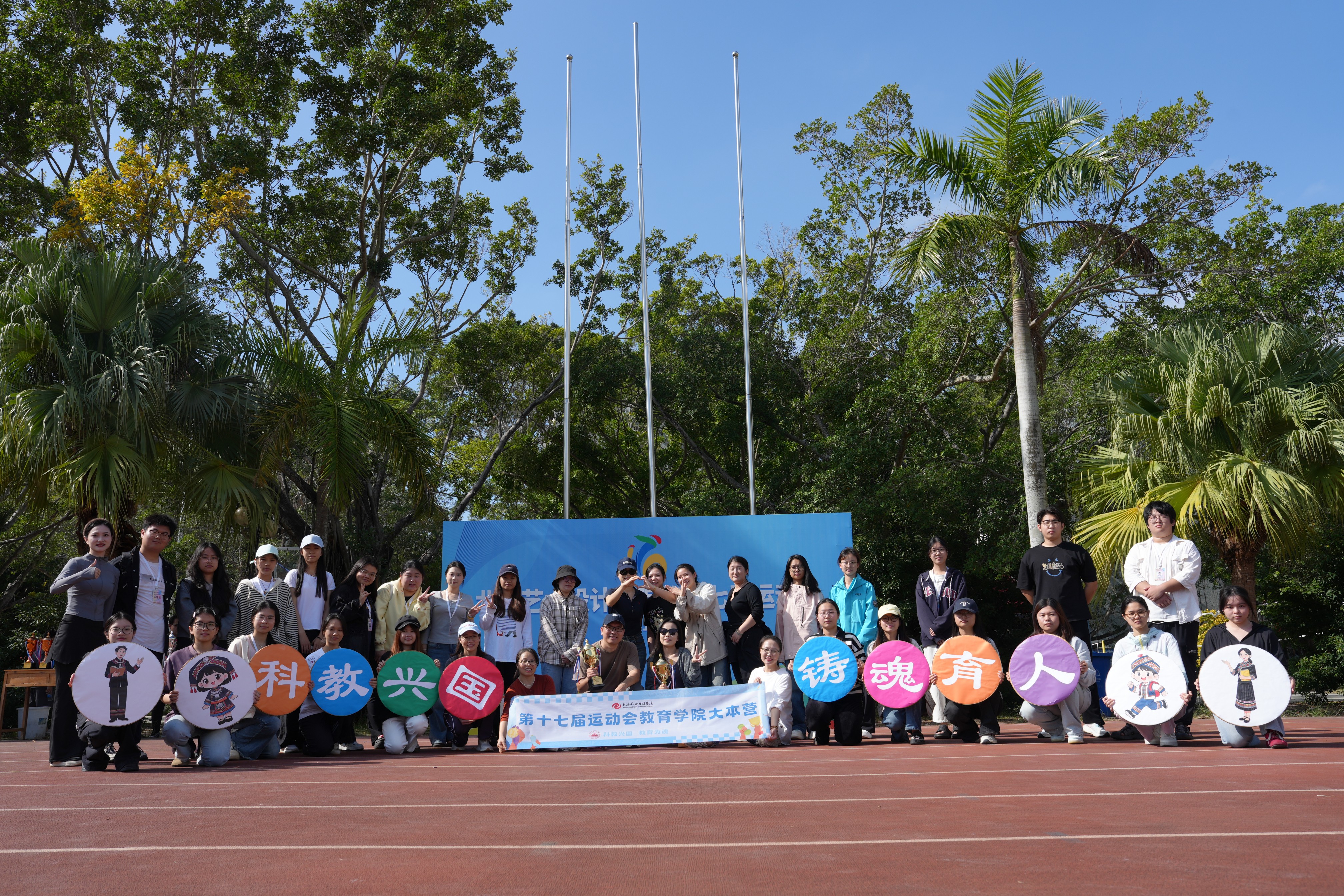 2025年12月19日至20日,我校第十七届运动会在东、西校区田径场顺利举行,教育学院全体师生积极参与并取得优异成绩。教育学院党支部书记黄思敏与学生代表共同参与开幕式方阵表演。