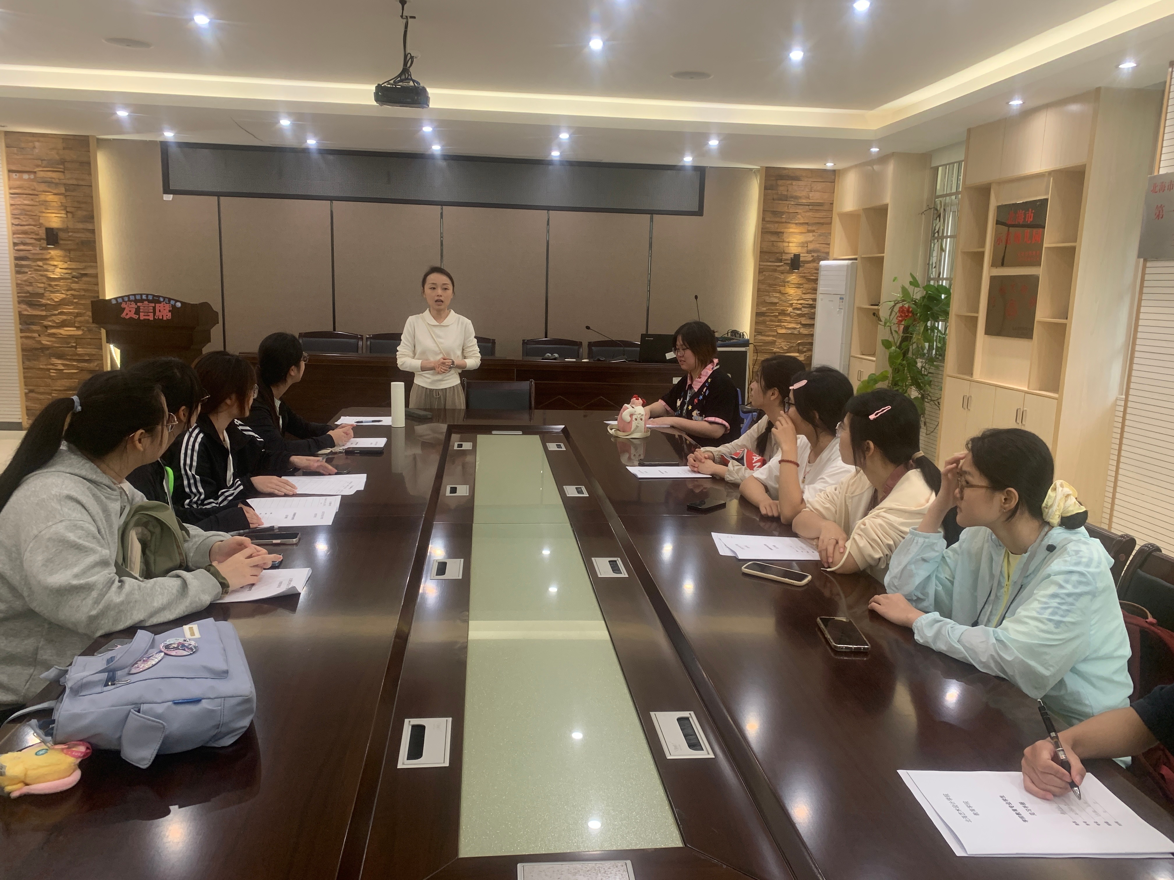北海市海城区第一幼儿园党支部副书记石清给见习生开展入园培训