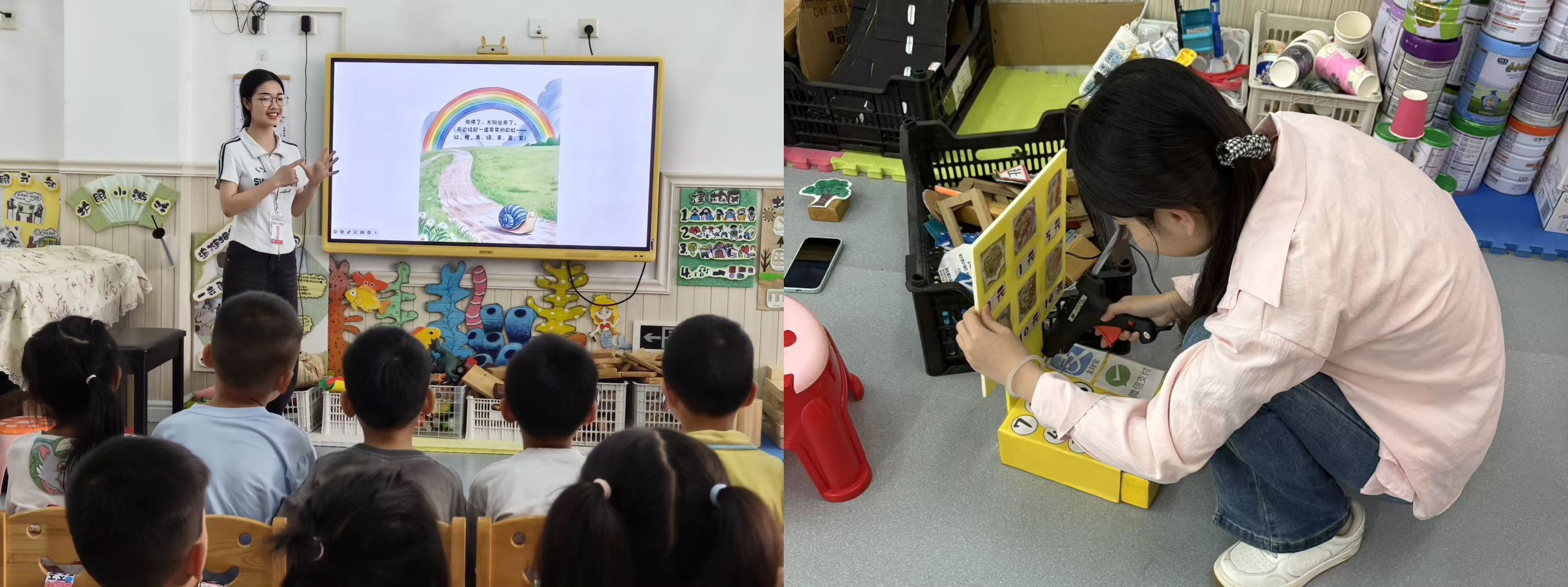 学前2501班王倩倩同学组织教学活动    学前2501班郑舒涵同学修理玩具