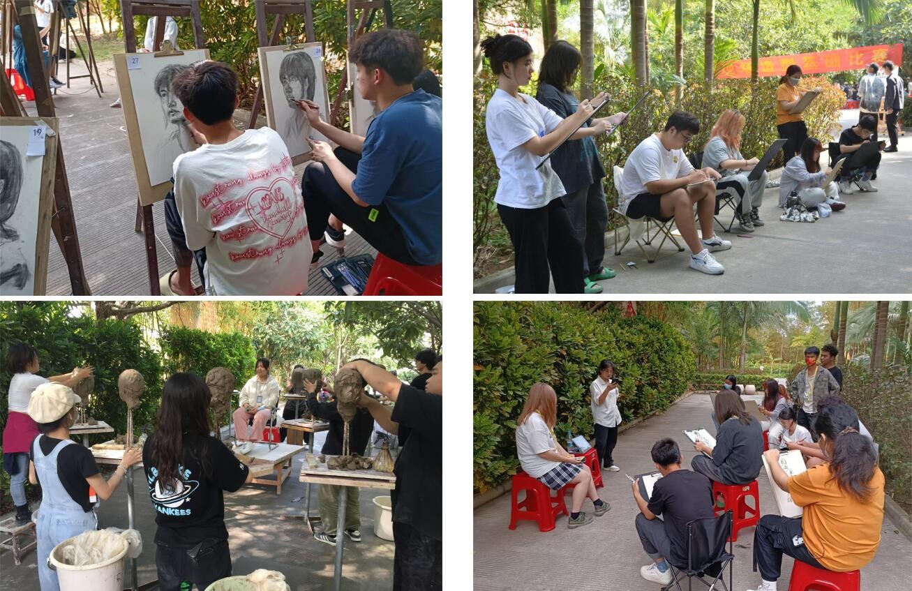 比赛当日天清气爽,学生走出课堂,感受自然之美,以绿茵为背景,留下独特的写生记忆。通过此次活动的举办,同学们在造型能力上的学习与交流进一步深入加强,同时为学生构建一个展现自己专业能力的平台。