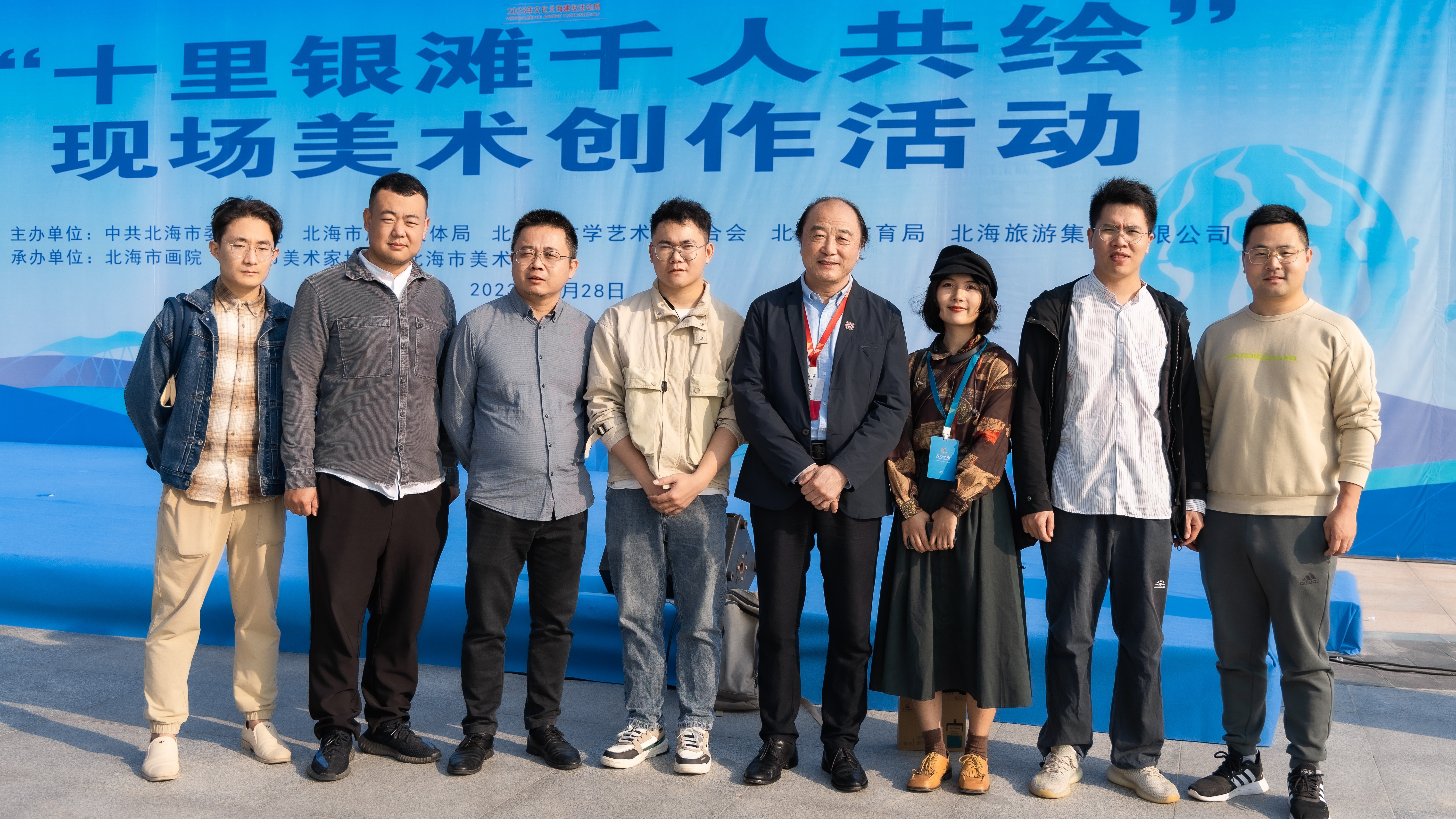 20231128日,为深入学习贯彻习近平文化思想和党的二十大精神,大力实施文化强市战略,加快“文化北海”建设,推动北海文化繁荣发展,积极配合市委市政府2023文化北海建设活动周,由我校美术学院常务副院长龚为领队、党总支副书记鲁明阳为副领队,共组织426名绘画专业学生和15名管理教师参加十里银滩千人共绘现场美术创作活动。