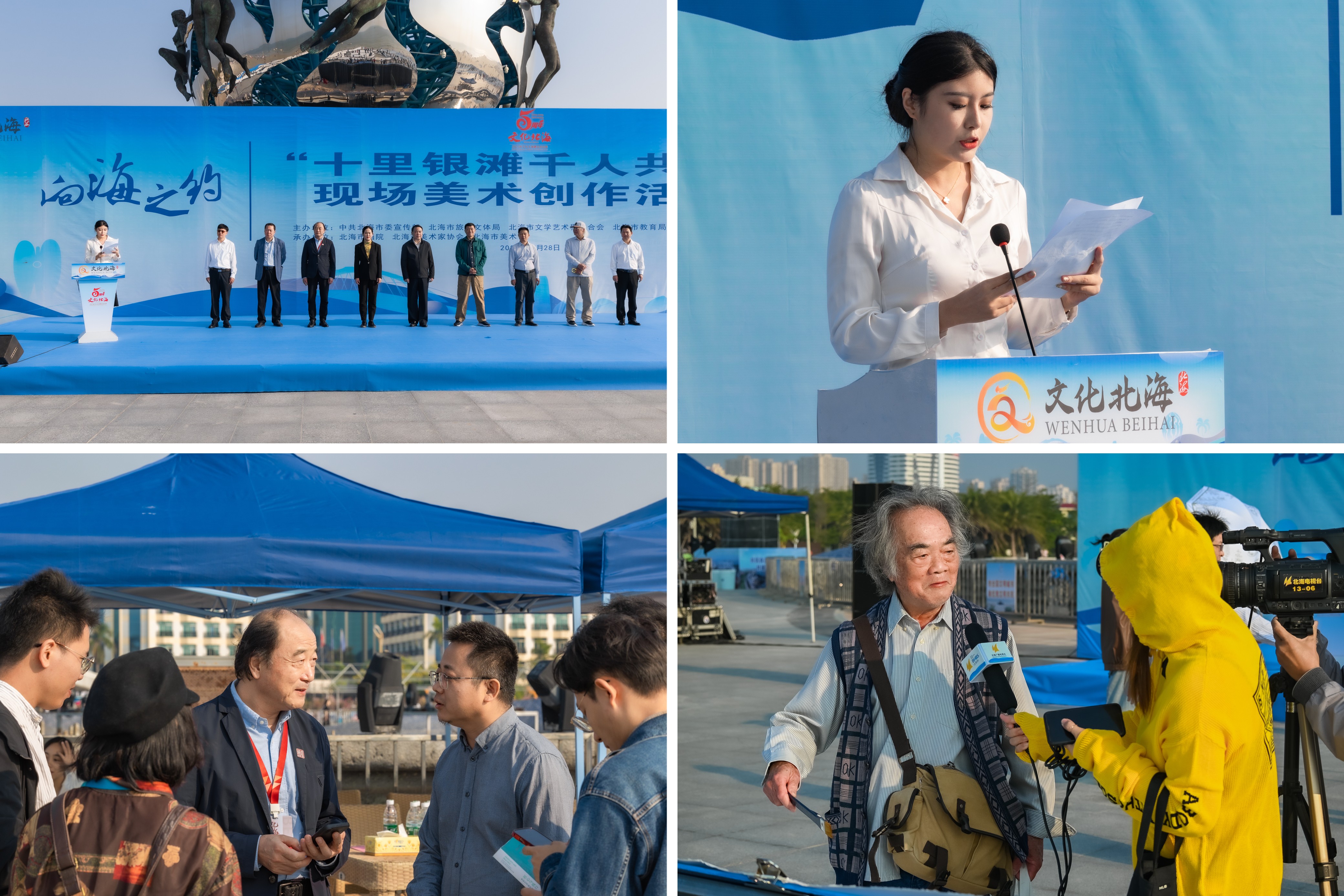 启动仪式上,绘画专业2203班的王嘉怡同学作为学生代表上台发言。来自中国美术家协会、广西美术家协会及北海市美术家协会的百名职业画家与全市四所高校近千名学子齐聚现场。