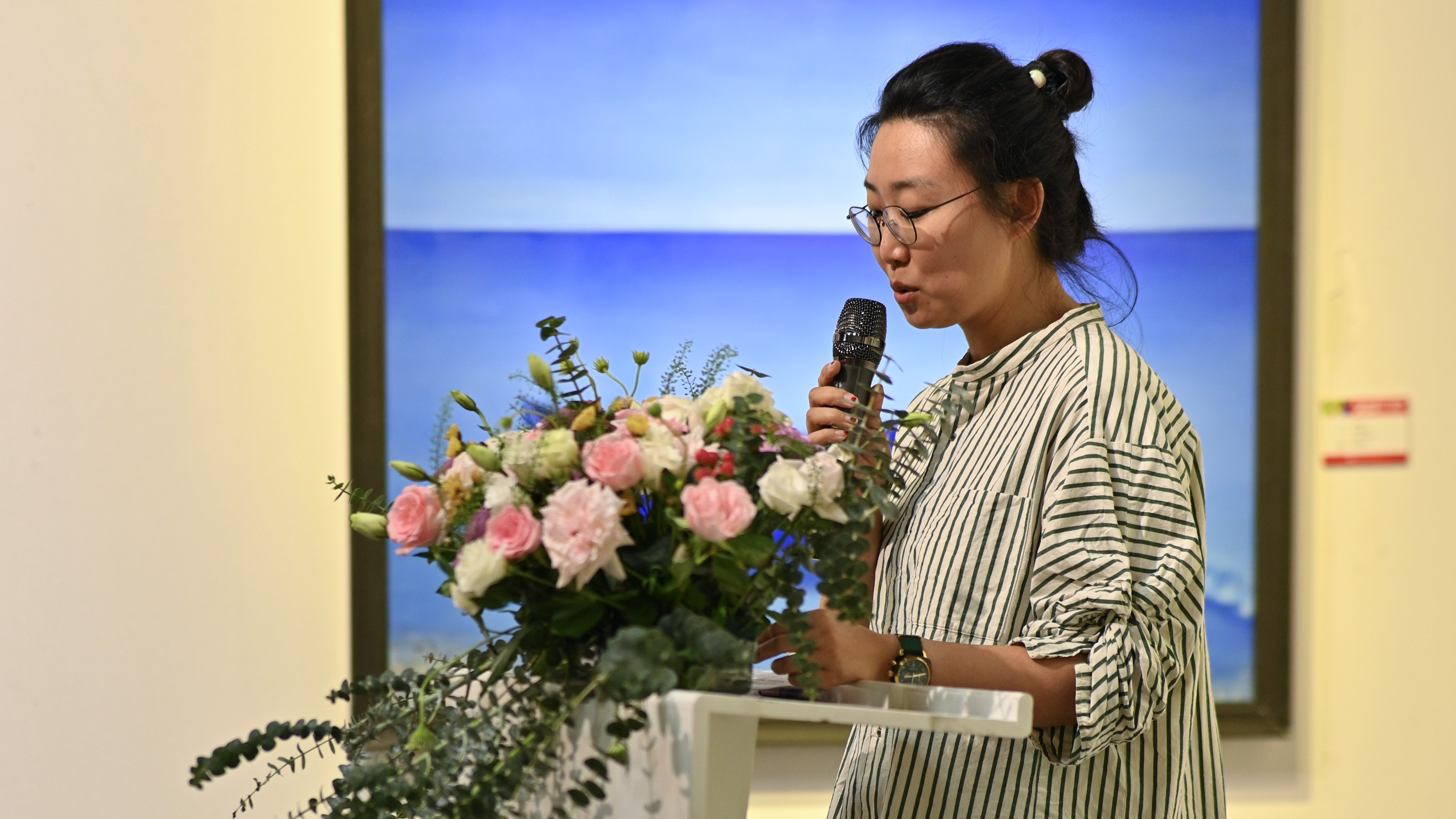 美术学院2020级优秀学生代表、多次荣获“三好学生”“优秀学生干部”和“优秀共青团干部”称号,并被评为自治区级优秀毕业生的周栩如同学作为代表发言。在表达对学校培养、老师教诲的感谢中,她说:“北艺是求知问学的殿堂,是探索艺术的圣地。优美的校园环境,现代化的教学设施,严谨的教学氛围为我们创造了良好的学习环境;思想崇高、学识渊博老师让我们如沐知识的春风;意气风发、聪敏勤思的同学们充满着青春的激情;五彩斑斓的校园文化实践活动丰富着我们的大学生活。”