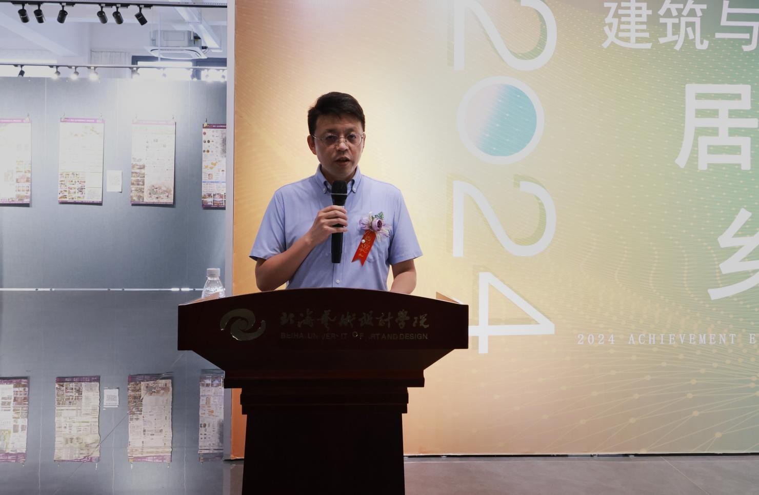 (北海艺术设计学院校长助理、建筑与环境艺术学院院长王照伟宣布展览开幕)