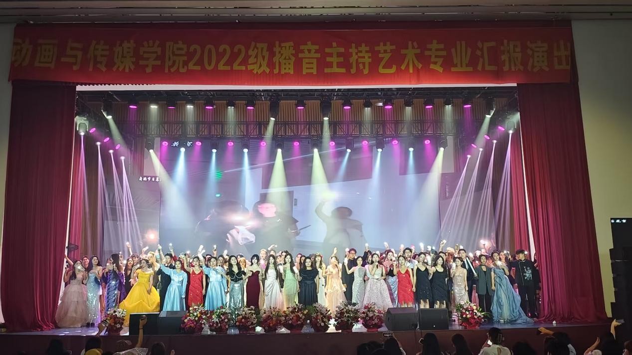 近日, 传媒艺术学院2022 级播音与主持艺术专业 “声漾星河,音启新程”汇报演出在西校区大礼堂成功举办。