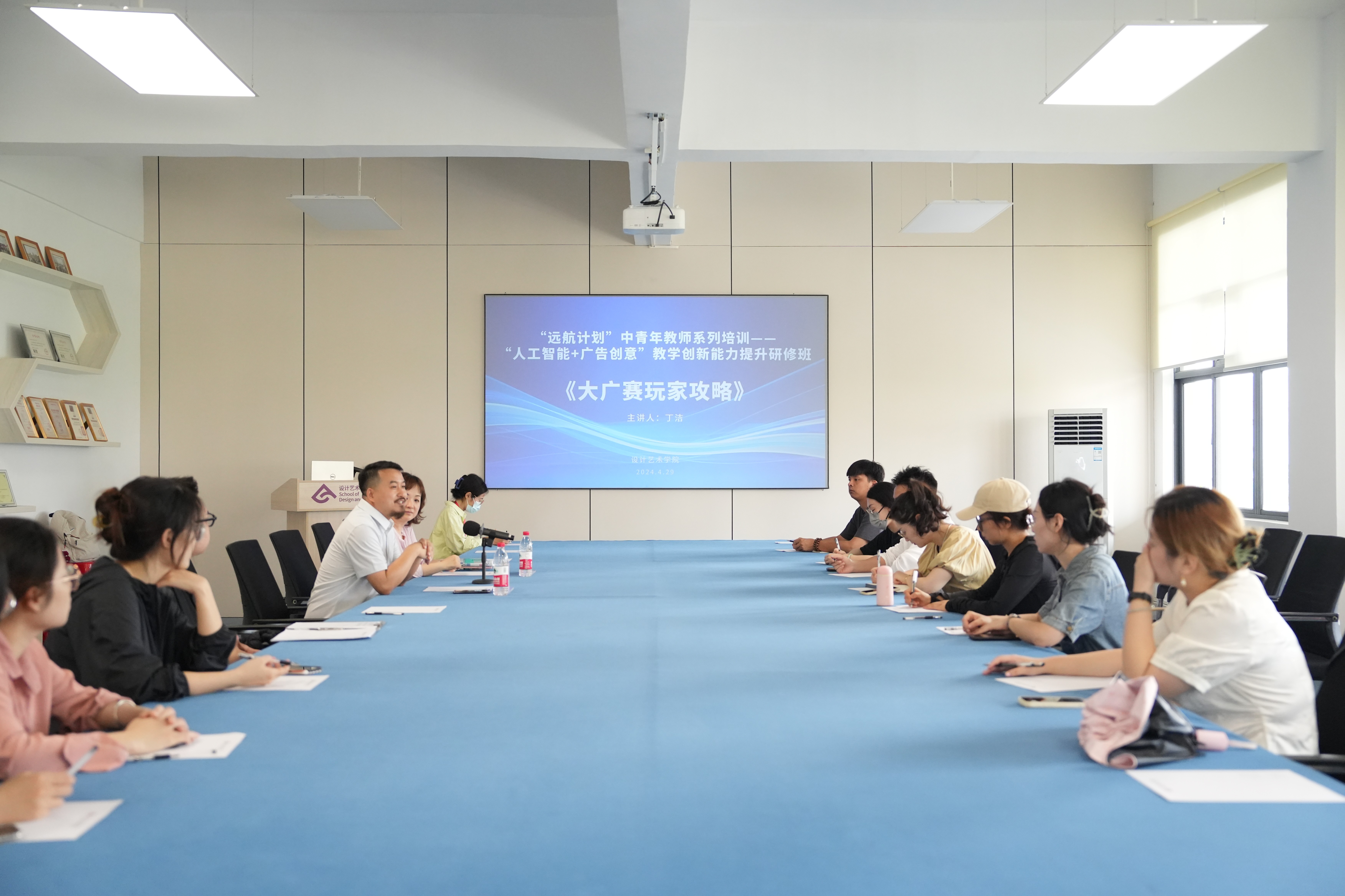 2024年4月29日,广西艺术学院影视与传媒学院丁洁教授为我院教师带来了一场主题为“大广赛玩家攻略”的培训,旨在提升中青年教师在“人工智能+广告创意”领域的教学能力。本次培训于设计艺术学院伦理楼408室开展,我院院长李林平以及广告设计与广告策划的任课教师等人共同参加了此次培训。
