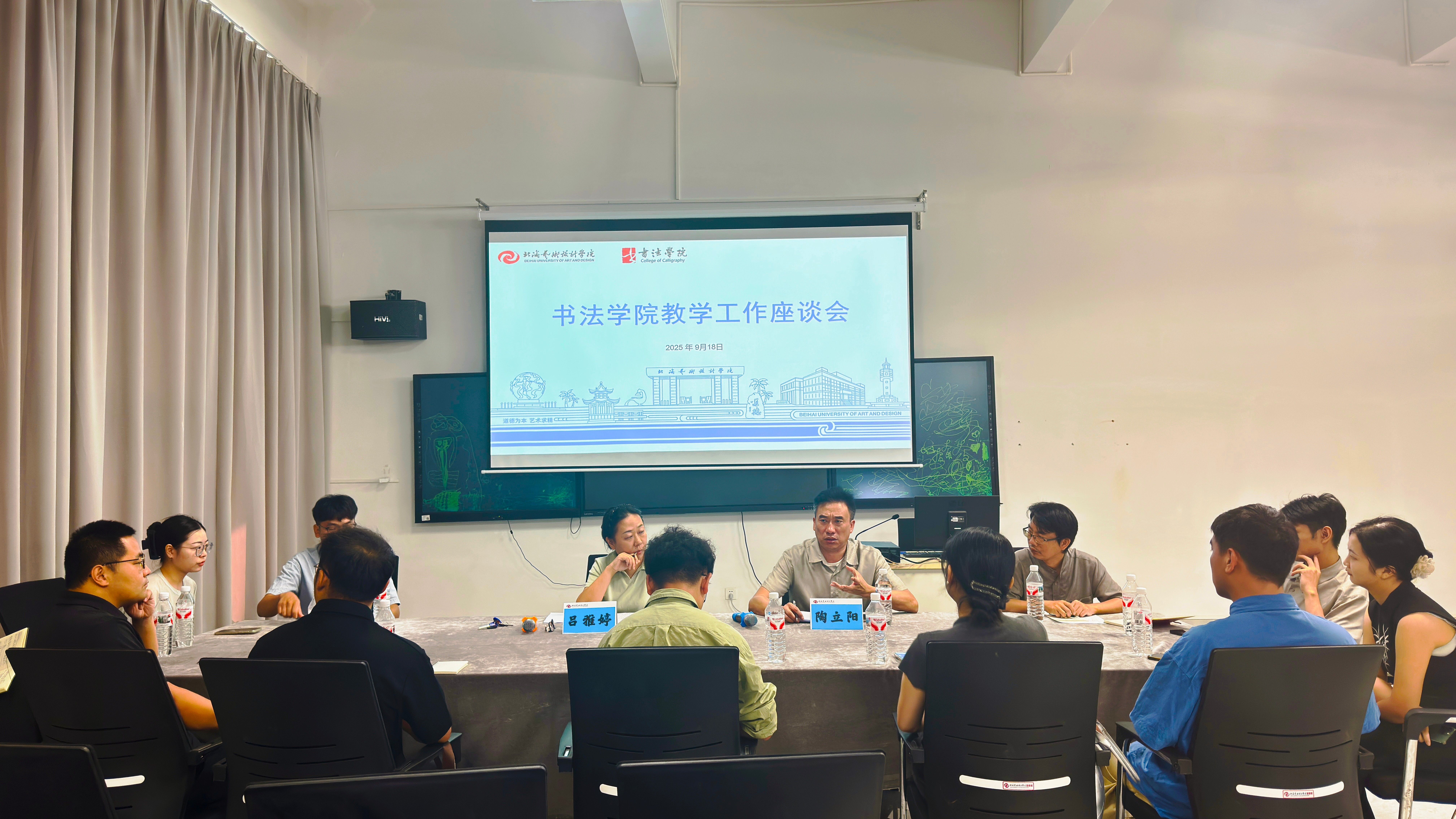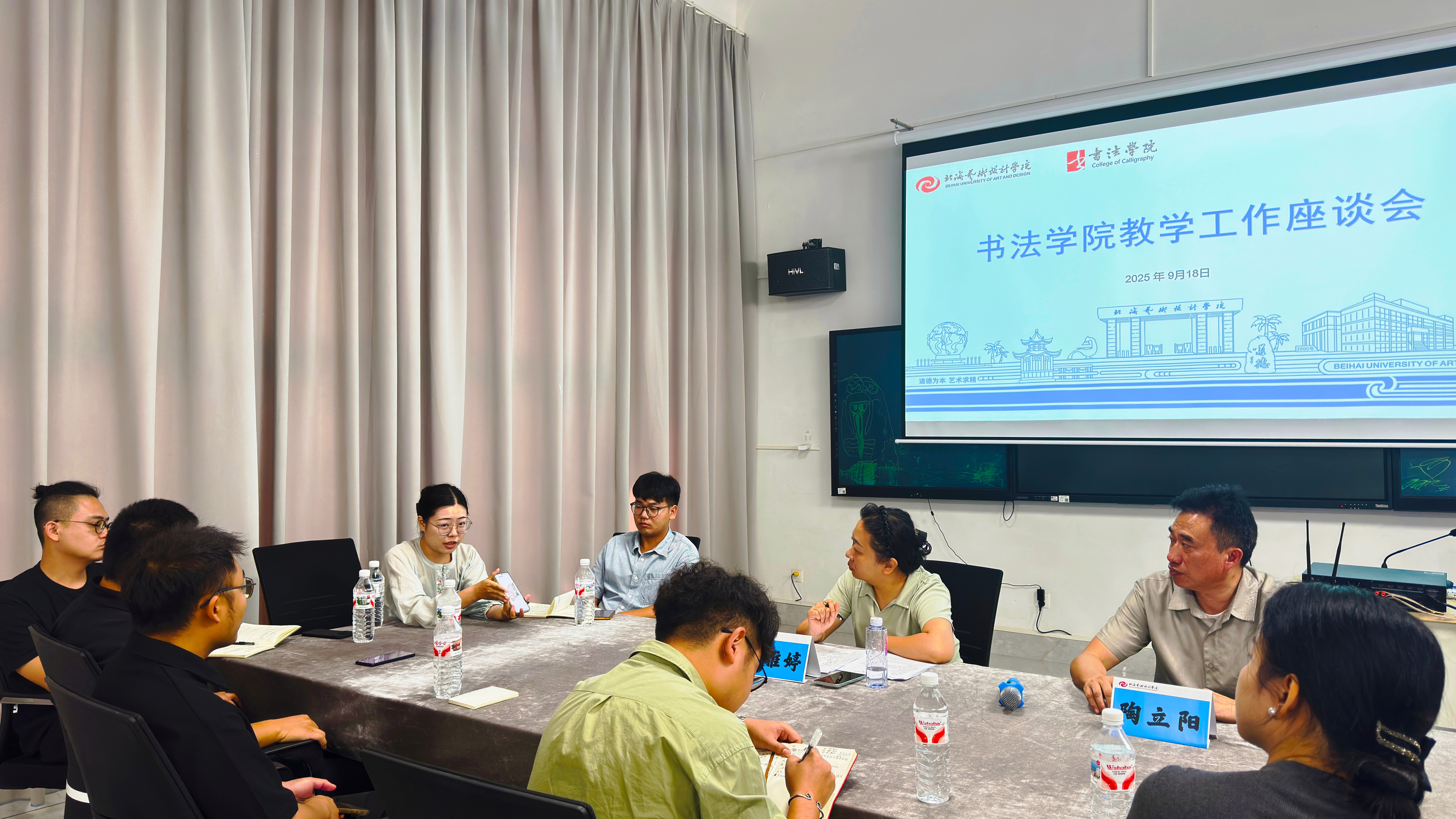 918日上午,副校长陶立阳、教务处副处长吕雅婷一行走进书法学院,与学院教师在艺德楼507教研室开展教学工作座谈会探讨学科发展方向书法学院常务副院长苏乃从党支部书记喻广林、分管教学副院长李东垚、分管学工副院长李家琪、黄荣婷、韦志忍及各部门主任骨干教师代表参会,围绕“书法学院人才培养及人工智能赋能教学”主题深入交流,为专业教学高质量发展凝聚共识。