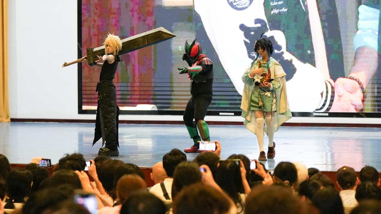 专业介绍会以学院宣传片开场,向新生们展现影视动画学院的发展历程、师资设备、教学特色、师生优秀作品及学院历年来取得的成果。随后,学院分团委学生的Cosplay表演点燃现场气氛,表演尾声,2025级全体辅导员携学院吉祥物“阿布”亮相,拉开专业介绍会的序幕。