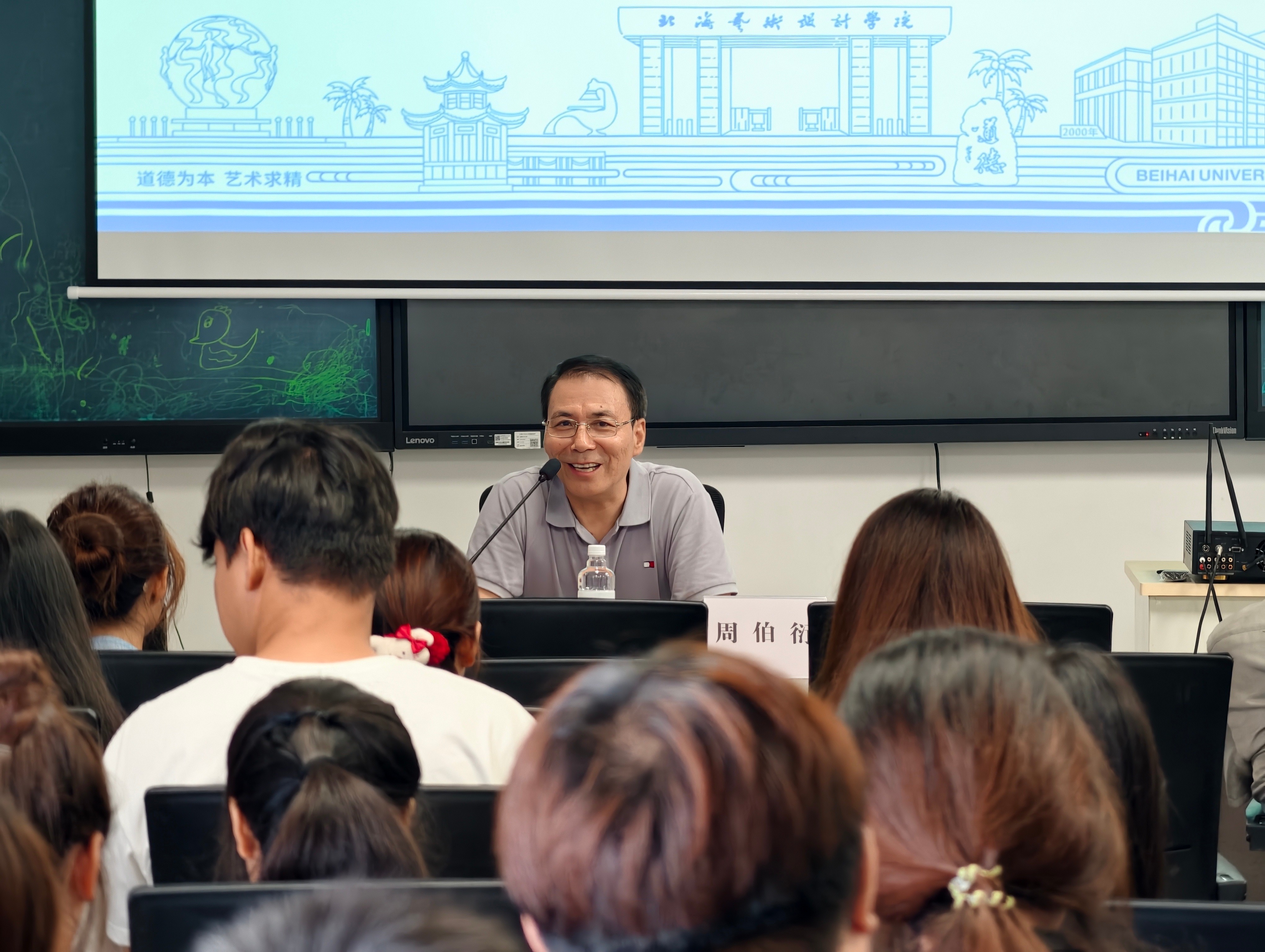 座谈会上,周伯衍教授结合个人学书历程,分享了宝贵的艺术经验与治学心得。他勉励同学们拓展知识视野,秉持“杂粮养人,杂学养文”的理念,在持续学习中提升综合素养。他强调,艺术探索永无止境,应在继承传统的基础上勇于创新、寻求突破。在交流环节,学生们踊跃提问,周教授逐一进行细致解答。随后,李和生主席作补充发言,进一步丰富座谈内容,拓宽了学术视野。