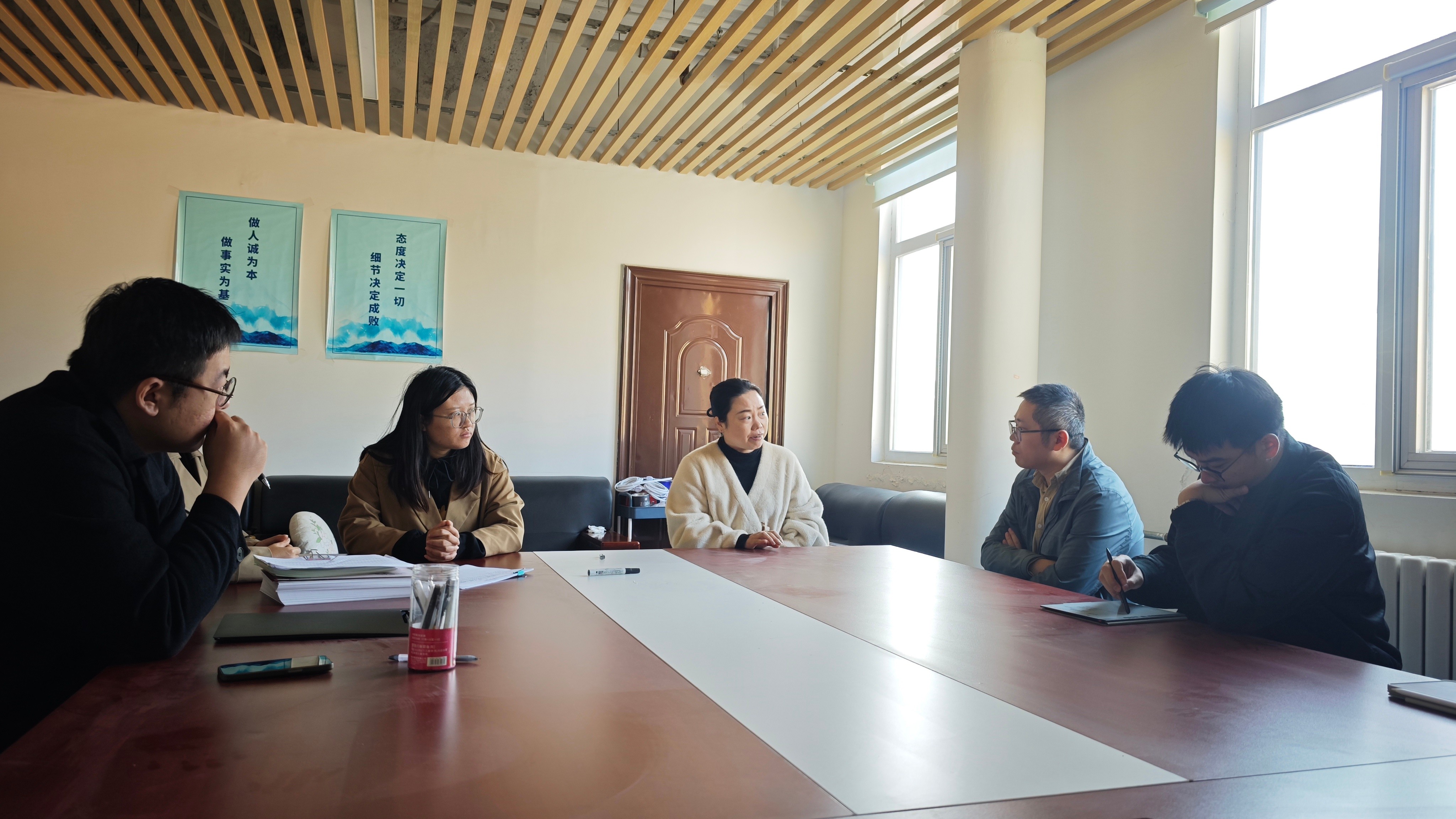 考察团首先抵达北京实践基地(宏福),在实地核查2022级学生授课环境与课堂氛围后,通过授课教师座谈、学生代表交流专题会议,全面掌握教学与实习实况。教师座谈环节,双方聚焦学生生活保障、毕业设计进度管控、跨校区课程衔接等核心议题深入研讨,学院领导结合调研情况明确后续教学节奏与毕业设计关键节点,为教学质量筑牢“防护网”。学生座谈会上,学生既认可企业项目专业对口的实战价值,也坦诚提及通勤、生活成本等实习压力。李高昱昊副院长全程认真倾听并传递学院关怀,鼓励大家充分利用首都优质资源提升竞争力,学院将持续做好后勤保障与学业支持,助力顺利毕业、实现高质量就业。