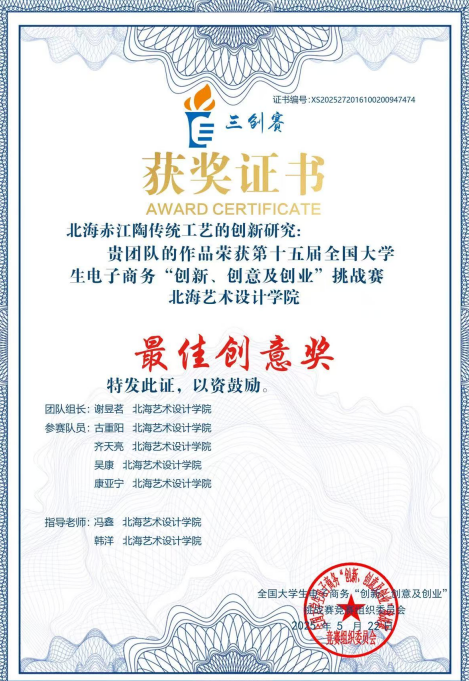 2025年5月 团队作品获第十五届全国大学生电子商务”创新、创意及创业”挑战赛获“最佳创意奖”、“最佳创业奖”;