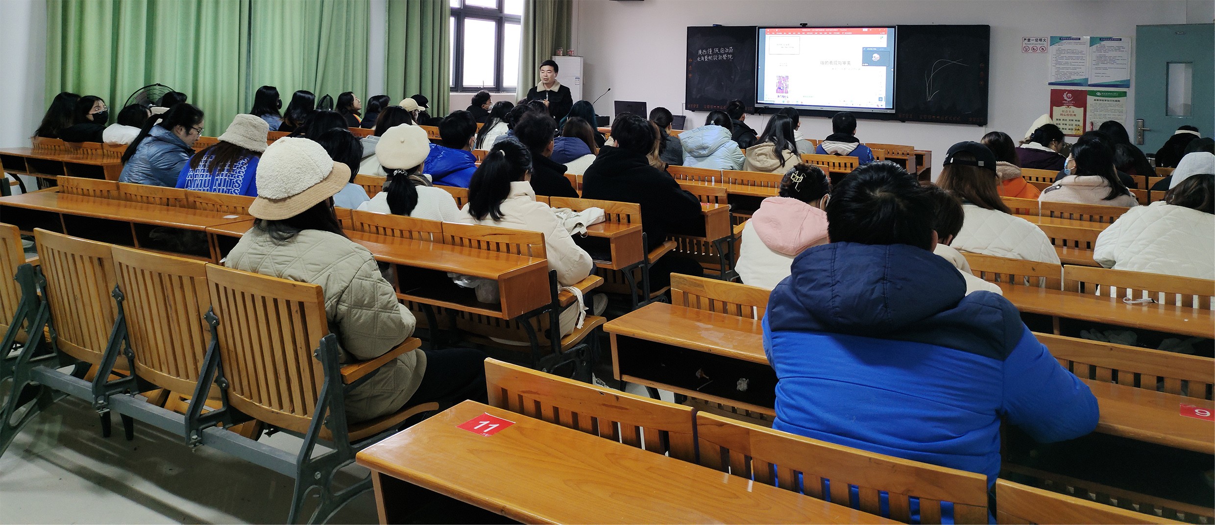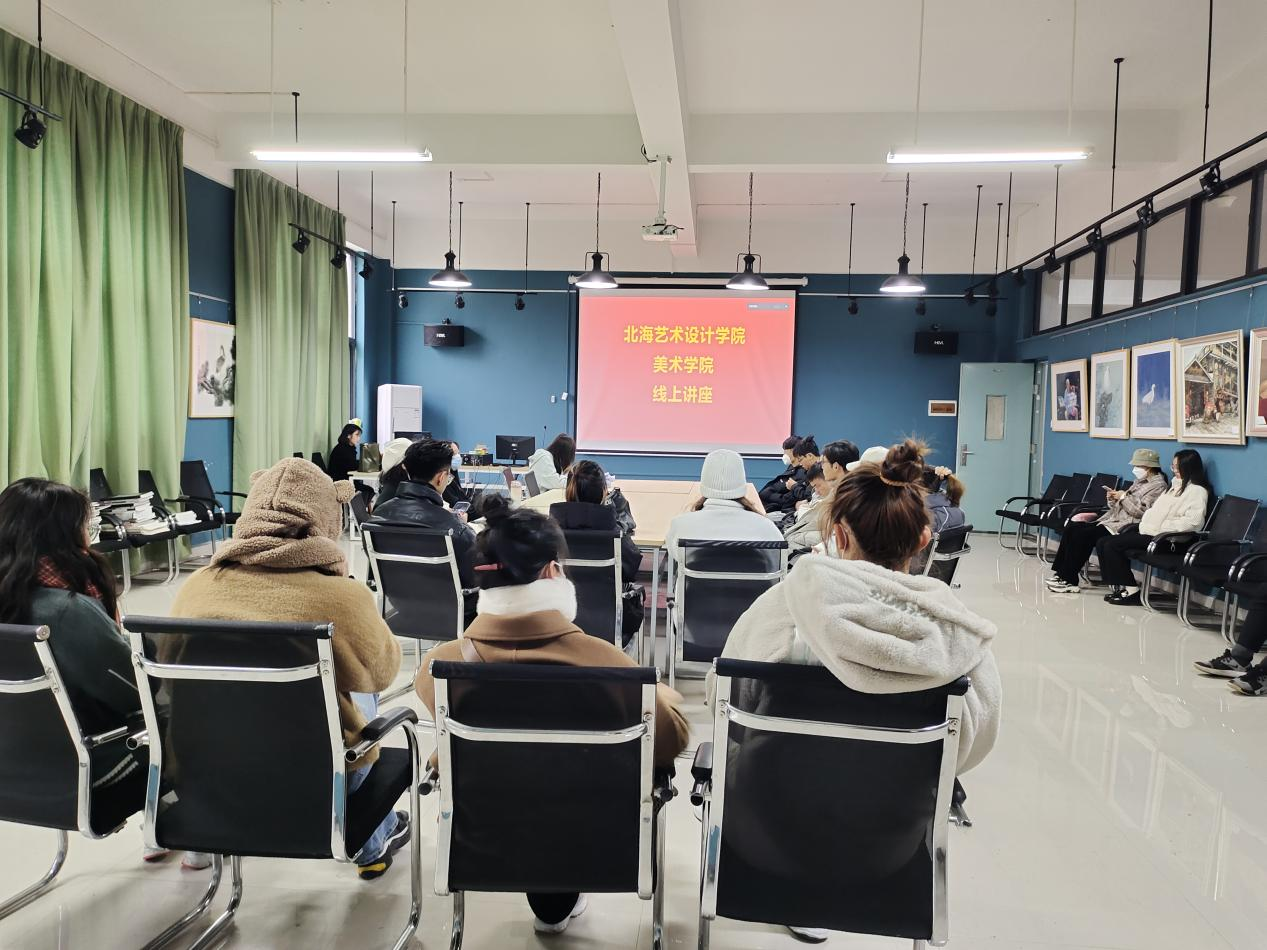 20211228日上午9点,陈孟昕教授为美术学院绘画专业进行《线的表现与审美——兼谈“学院派”的造型问题》讲座,本次讲座由线上会场以及两个实体会场组成,近300名学生参与,由美术学院综合办主任肖玺主持,综合办副主任陈建江组织实体会场。