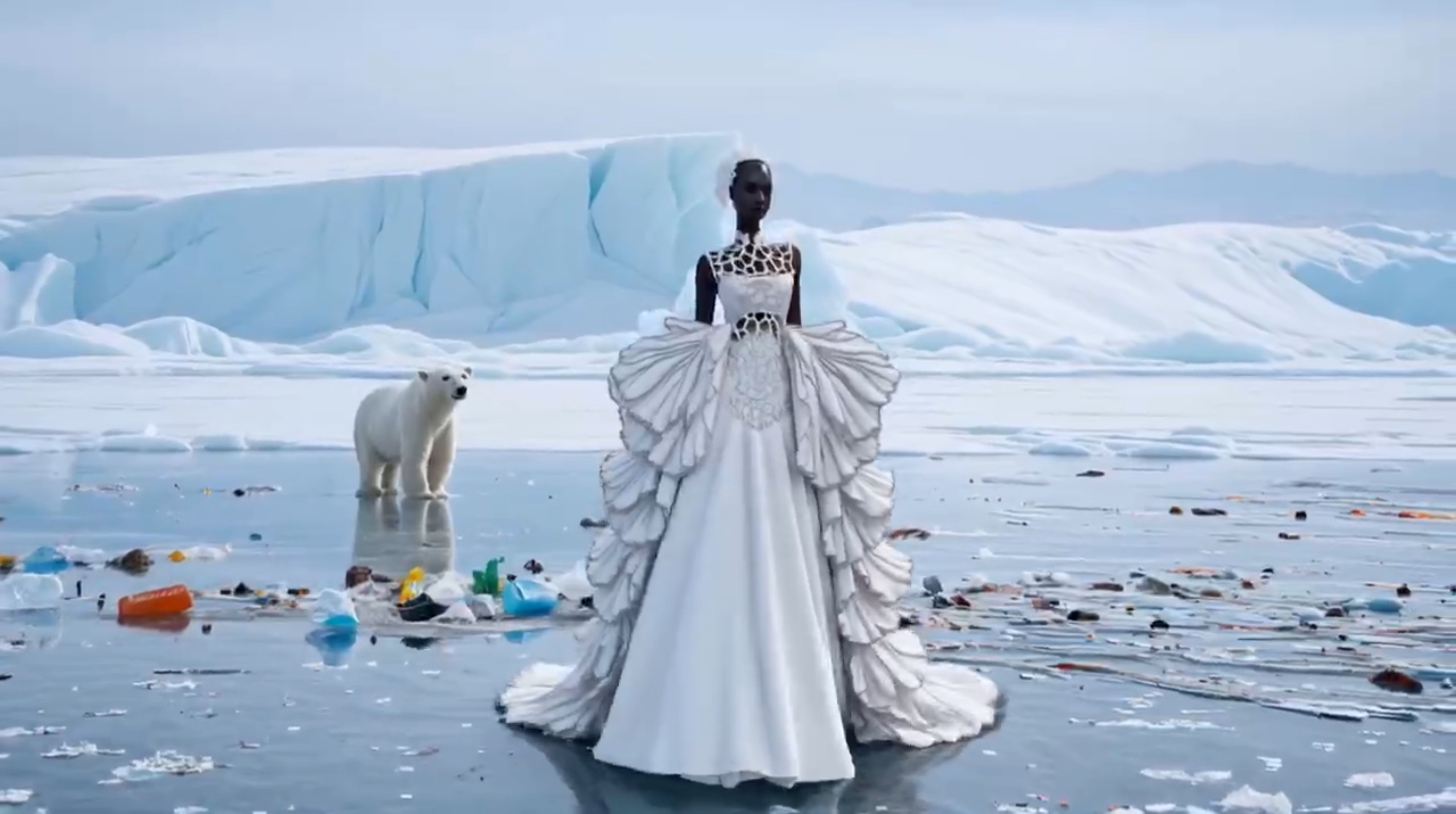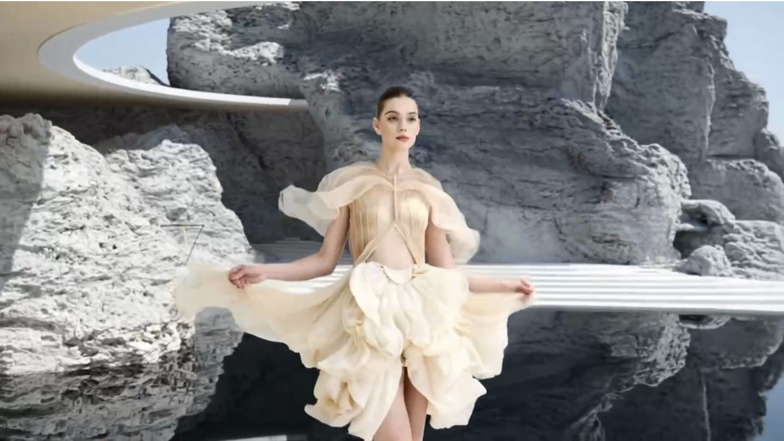 AI时尚团队学生代表丁越分享了本次虚拟时装秀背后的故事,她表示,AI不只是冰冷的工具,更像一位需要“对话”的伙伴。比如,在把设计图生成真实模特穿着服装走秀场景时,AI 总将模特或衣服生成的比较平面生硬,失去了真实服装的质感和走秀的灵动感。为了攻克这一点,团队反复调整对生成视频的描述,并结合各个AI 软件的特点和强项,完成服装模特的真实化处理及图像扩展,并实现动态视频的流畅运镜与场景合成。最终让 AI学会了如何平衡设计感与真实感。她深刻体会到:AI技术不是替代,而是设计的桥梁。