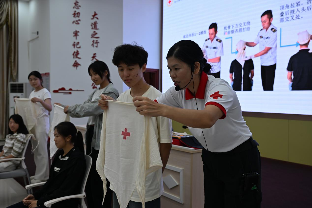 紧接着,北海市红十字会林老师向志愿者们讲授应急救护培训,培训涵盖了海姆立克急救法、昏厥与癫痫发作的现场处理、创伤包扎、心肺复苏以及AED的使用方法等多个实用模块。
