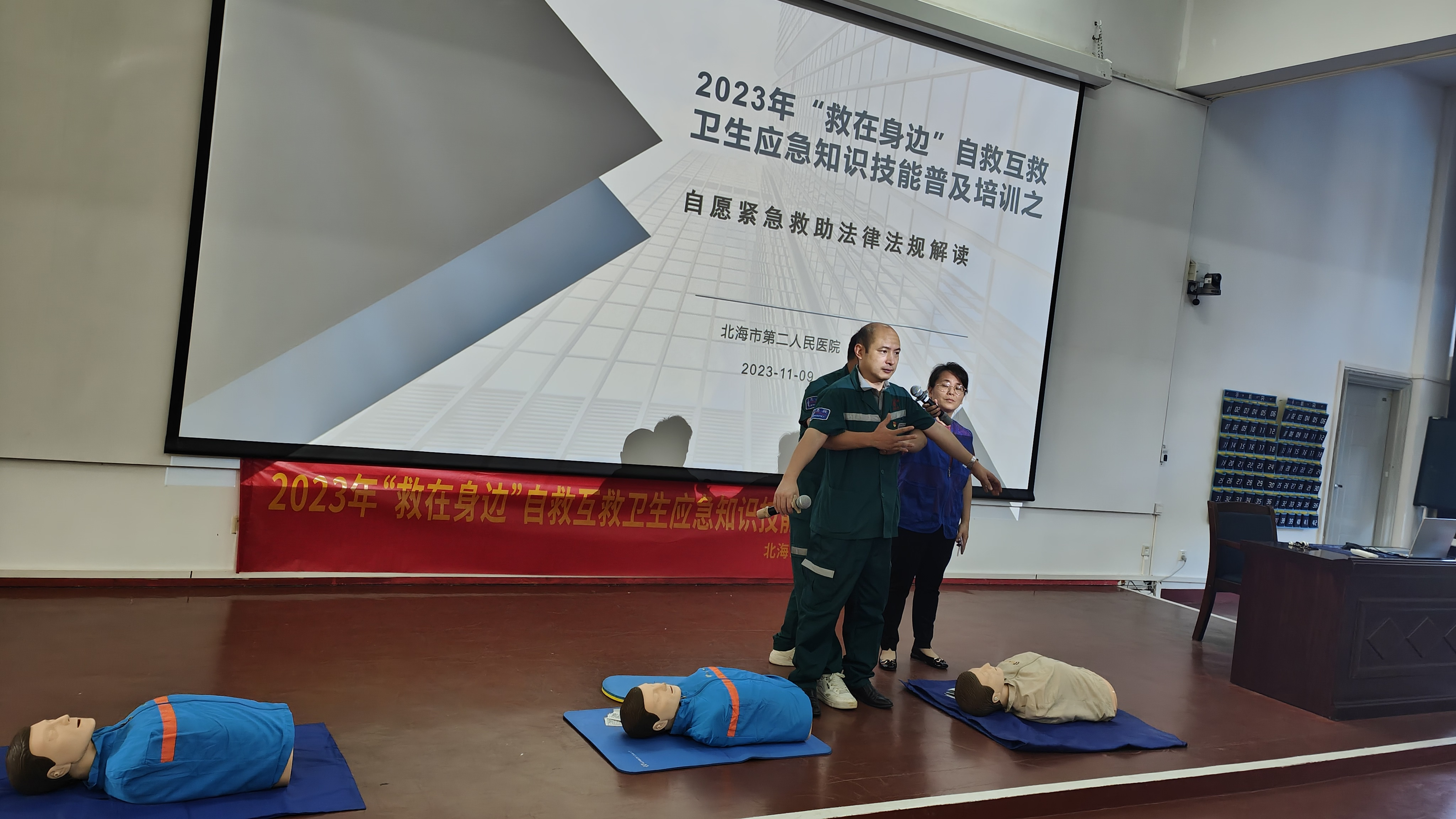 本次培训由学工系统及学生宿舍管理中心工作人员参加。培训主要内容:1、《自愿紧急救助法律法规解读》2、《常用急救知识》+《如何拨打120》3、心肺复苏术、气道阻塞的现场急救和创伤止血包扎技术现场演示和实操指导。