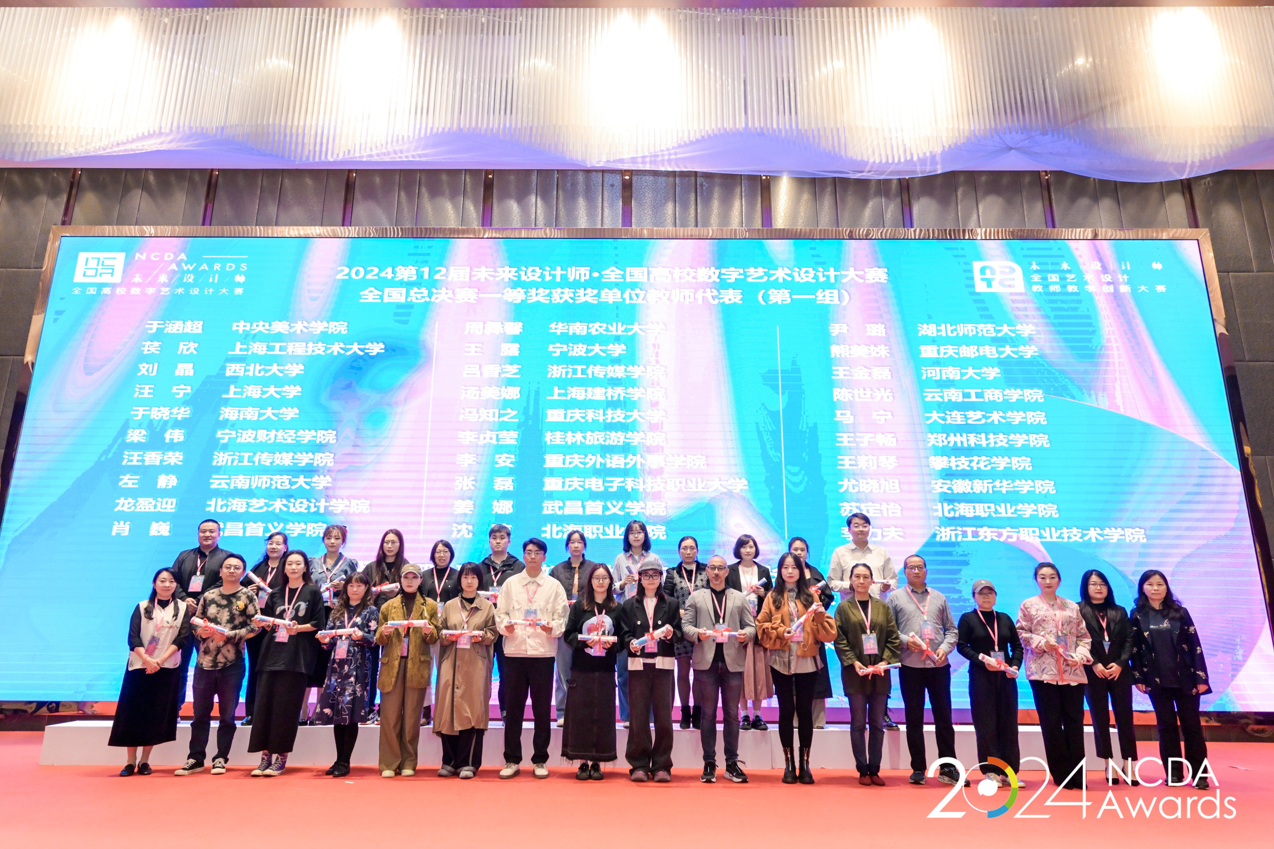 近日202412届未来设计师·全国高校数字艺术设计大赛(NCDA)和未来设计师·全国艺术设计教师教学创新大赛(NDTC)颁奖典礼在重庆举行。设计艺术学院师生在竞赛中取得优异成绩!共荣获全国一等奖5项、二等奖6项、三等奖12项、优秀奖1项;广西区赛一等奖45项、二等奖32项、三等奖40项“优秀指导教师奖”19“优秀组织教师”1项;我校荣获“卓越组织奖”。