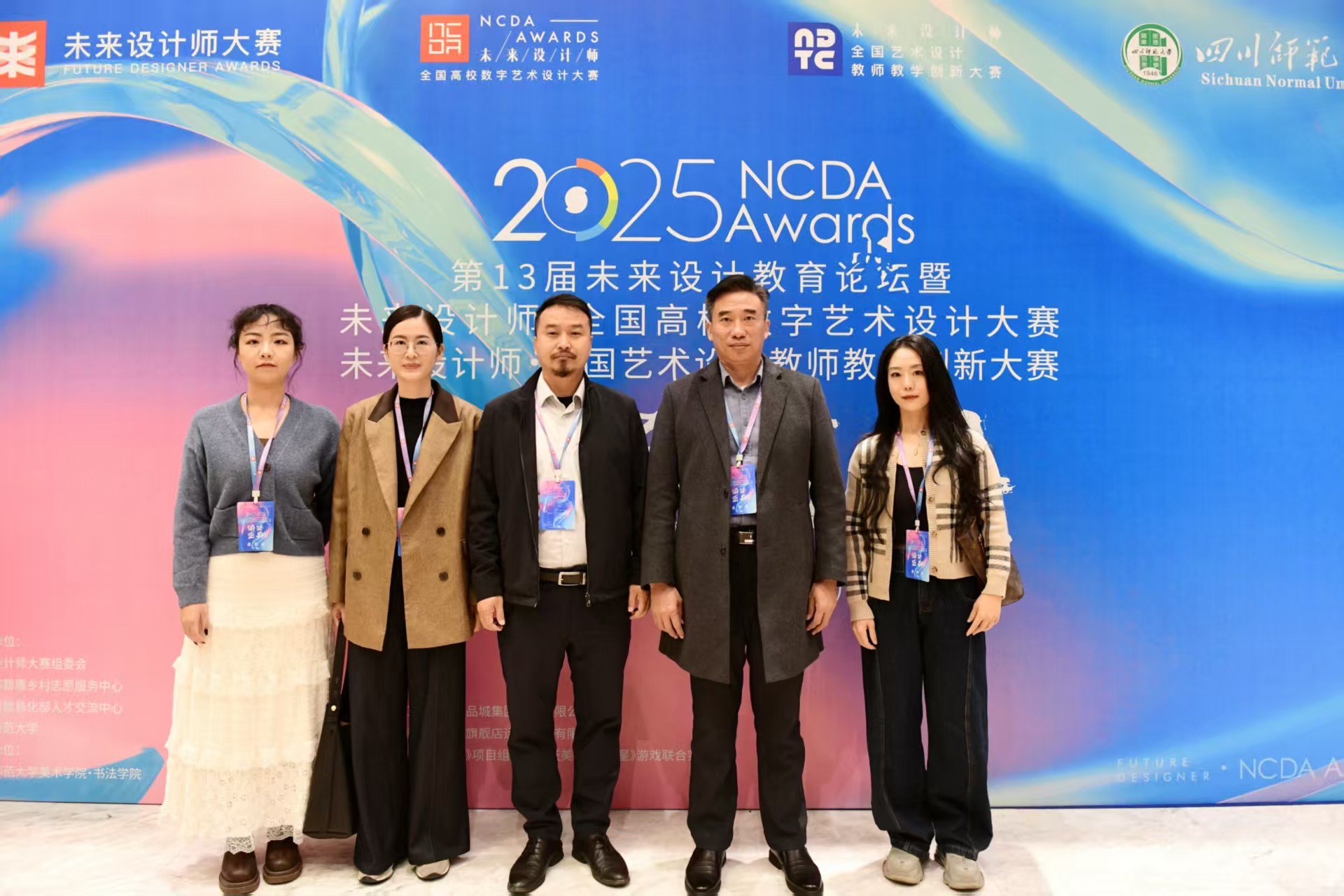 11月23日举行的第13届未来设计教育论坛暨NCDA颁奖典礼上,我院再创佳绩:师生团队共摘得全国一等奖3项、二等奖5项、三等奖4项;白建强、陈琛、贾政波等12位教师获评“优秀指导教师”;学校凭借完善的组织工作与突出的参赛成效,荣膺大赛“卓越组织奖”,全方位展现了我院在艺术设计教育与教学创新领域的综合实力。