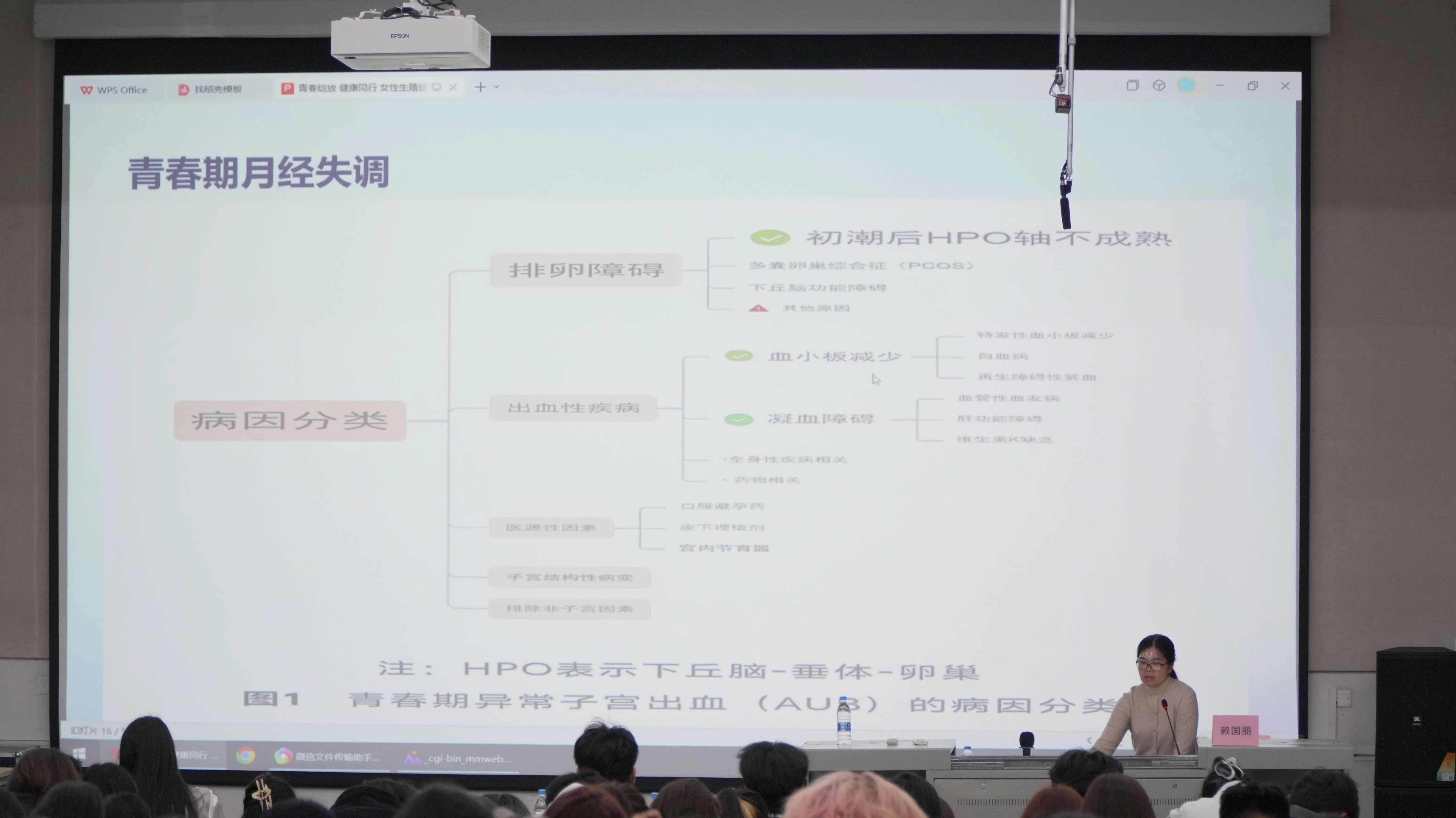 为进一步提高女性生殖健康知识知晓率,关爱女性健康,树立科学预防艾滋病及其他妇科疾病的意识,11月22日,我校于公德楼107举办了“校园无艾·青春有爱”性与生殖健康、女性生理健康、防艾禁毒主题讲座,为此特邀北海市第二人民医院妇科副主任医师赖国丽围绕主题“青春绽放,健康同行”进行了科普女性生殖健康专题讲座。