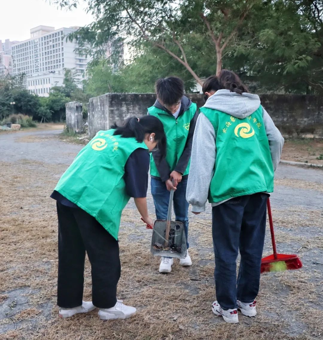 每天参与活动的志愿者被分为五小组,由组长带队分别在西校区十一栋女寝旁、西校区篮球场、西校区操场及周边、东校区操场及周边、东校区篮球场等地进行垃圾清理。