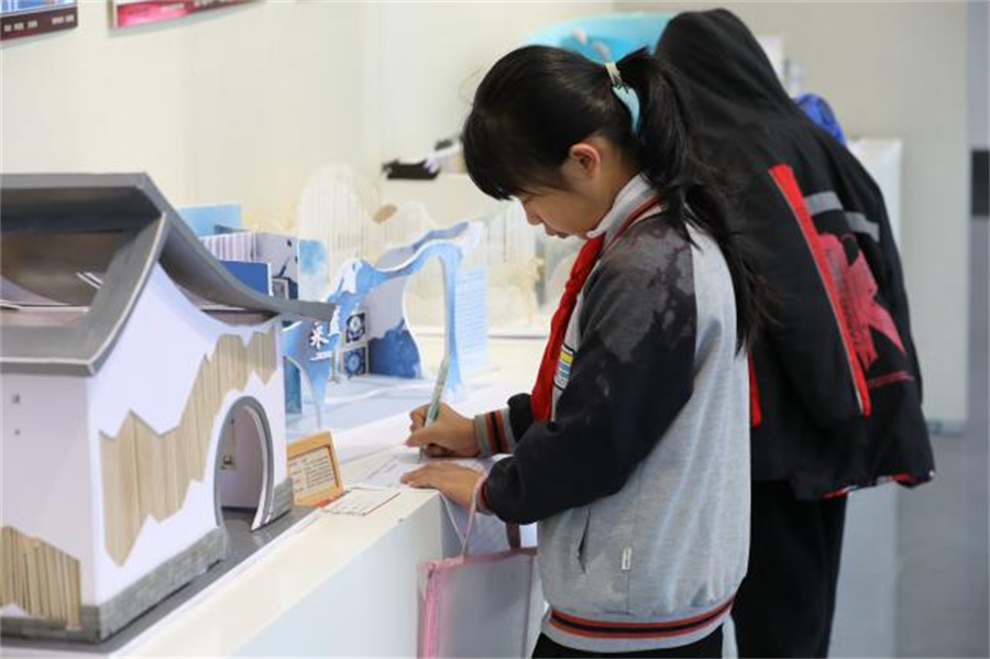 参观学生根据喜欢的作品认真做记录