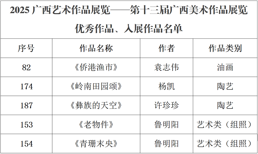 喜报|美术学院师生作品入展2025广西艺术作品展览