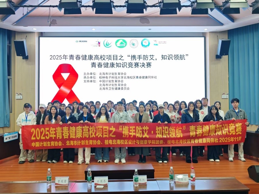 近日,由北海市计划生育协会主办、桂林电子科技大学协办的2025年北海市青春健康高校项目之“携手防艾,知识领航”青春健康知识竞赛圆满落幕。我校六名学生凭借扎实的知识储备和出色的现场表现,在众多参赛队伍中脱颖而出,荣获优秀奖。