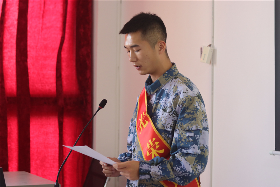 党委书记李高南发表讲话。李书记在讲话中对退伍同学予以肯定,希望同学们在今后的学习、工作、生活中,珍惜军人荣誉,继续保持和发扬人民军队的优良传统,退伍不褪色,争做新时代的好青年。