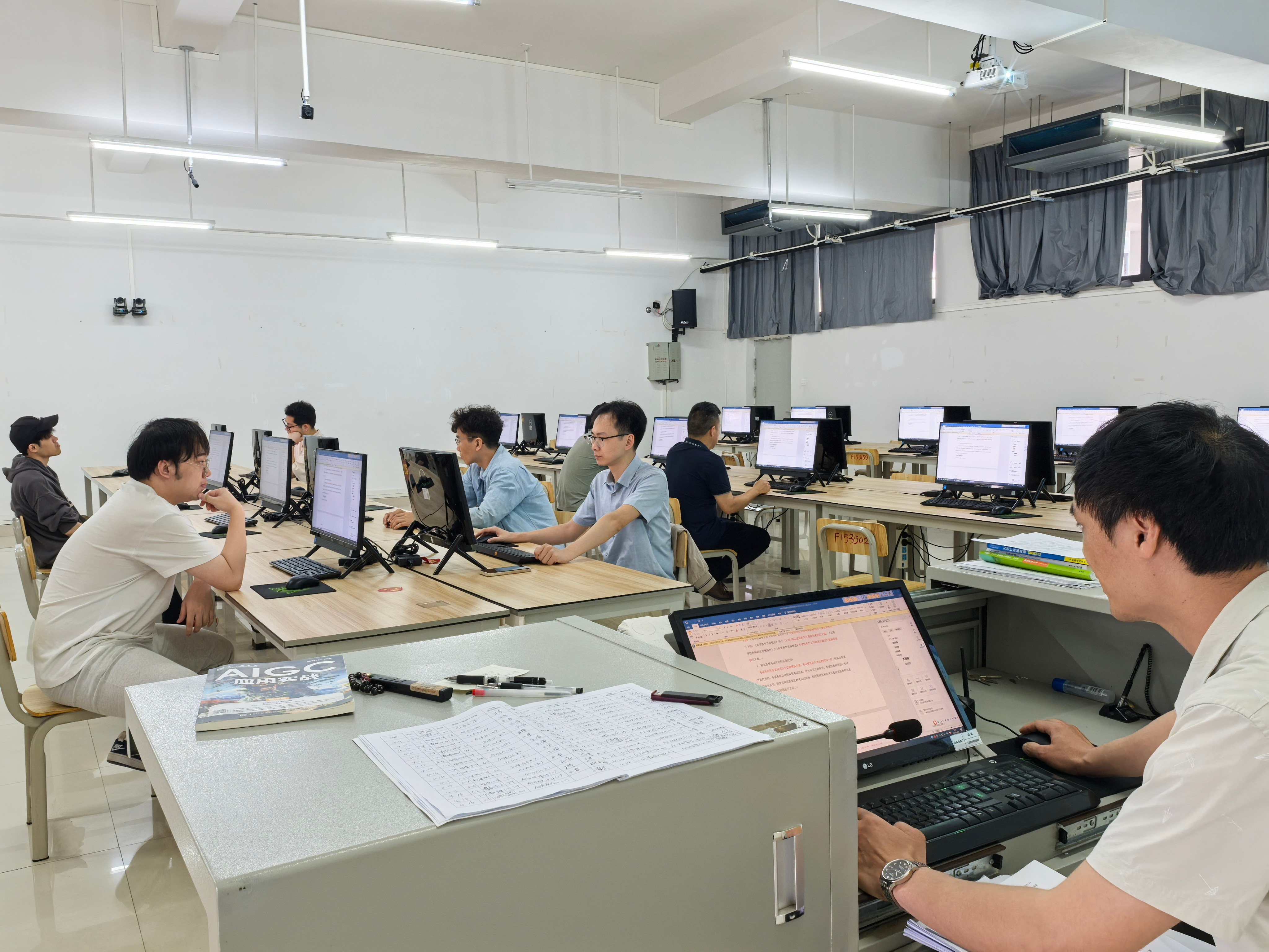 2025 年,广西高校教师资格理论考试迎来全面机考改革,我校凭借扎实的技术实力与丰富的考务经验,成功承担北海市唯一考点重任。作为此次考试的技术实施部门,设备与信息处迎难而上、周密部署,圆满完成 6 间考场、300 台考试终端的部署调试工作,为考试平稳有序开展筑牢坚实的技术堡垒。​