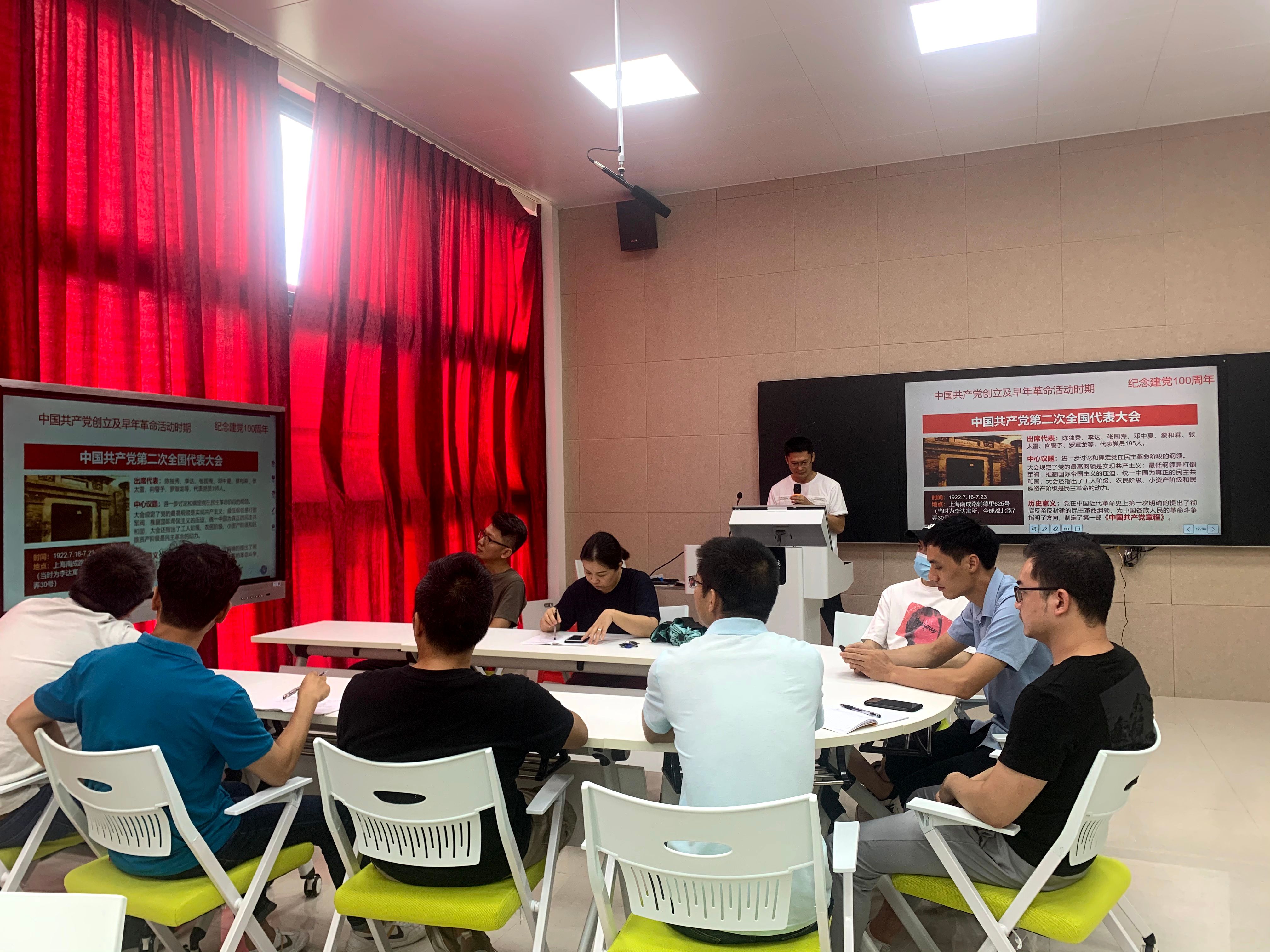 2021年12月27日,实验与信息化中心进行党史学习。中心副主任苏时斌老师带领各老师回顾了党的光辉历程,各老师纷纷表示受到了一次深刻的党史教育。(蔡光瑞/摄)