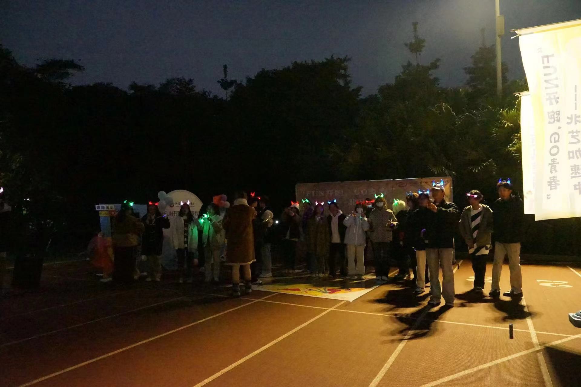 本次活动也是一项强身健体的运动。现代人的生活方式普遍较为久坐,缺乏运动。荧光夜跑活动提供了一个锻炼的机会,可以帮助同学们改善身体素质。通过参与荧光夜跑活动,同学们能够积极投身于体育运动,培养健康的生活习惯。