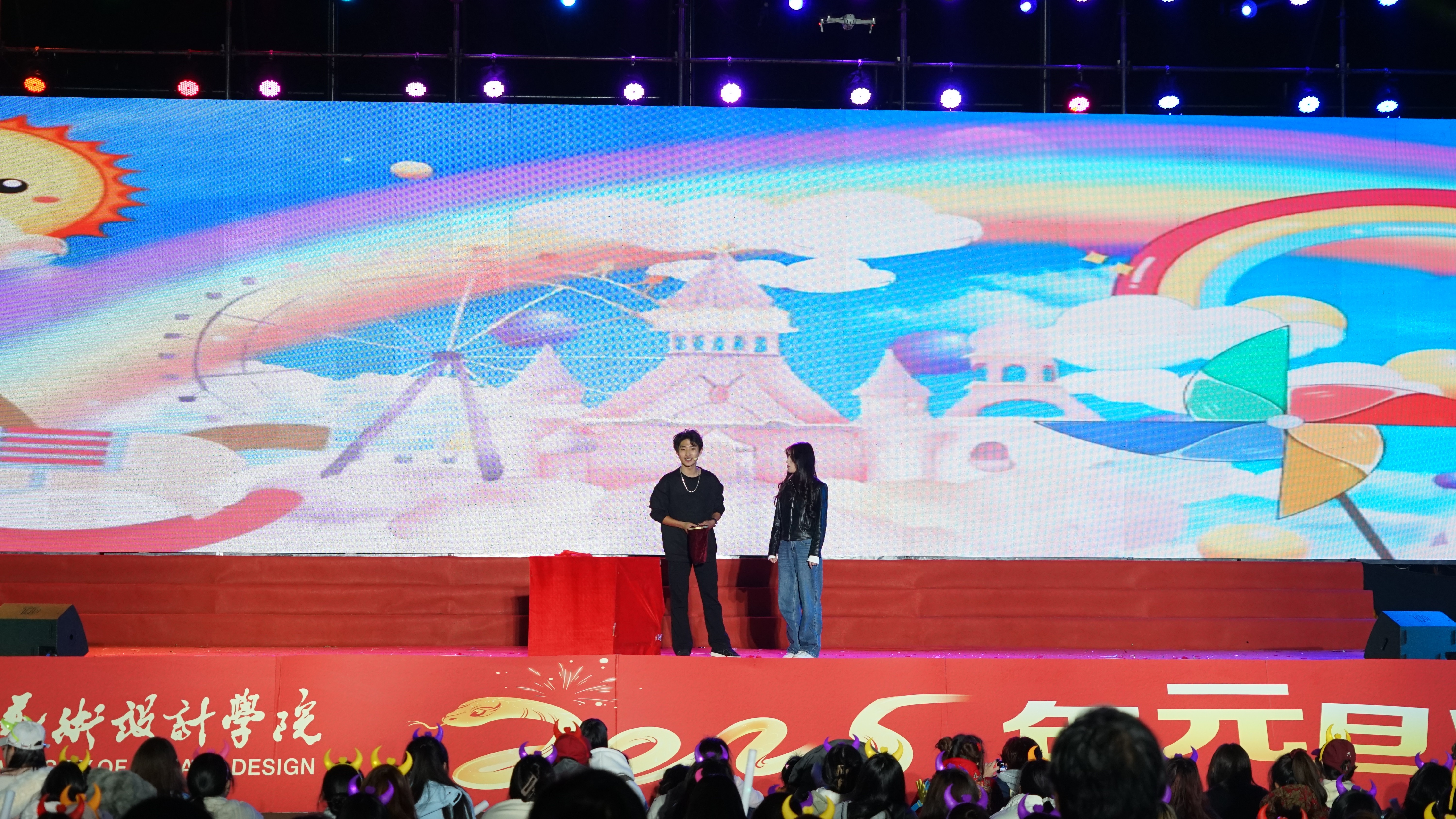 时光荏苒,2024年步入尾声,2025年的元旦佳节即将来临。在这个辞旧迎新的美好时刻,我校于12月29日晚,在西区操场举行“艺韵新程,共绘华章”——2025年元旦晚会,全校师生齐聚一堂,共同迎接新年的到来。