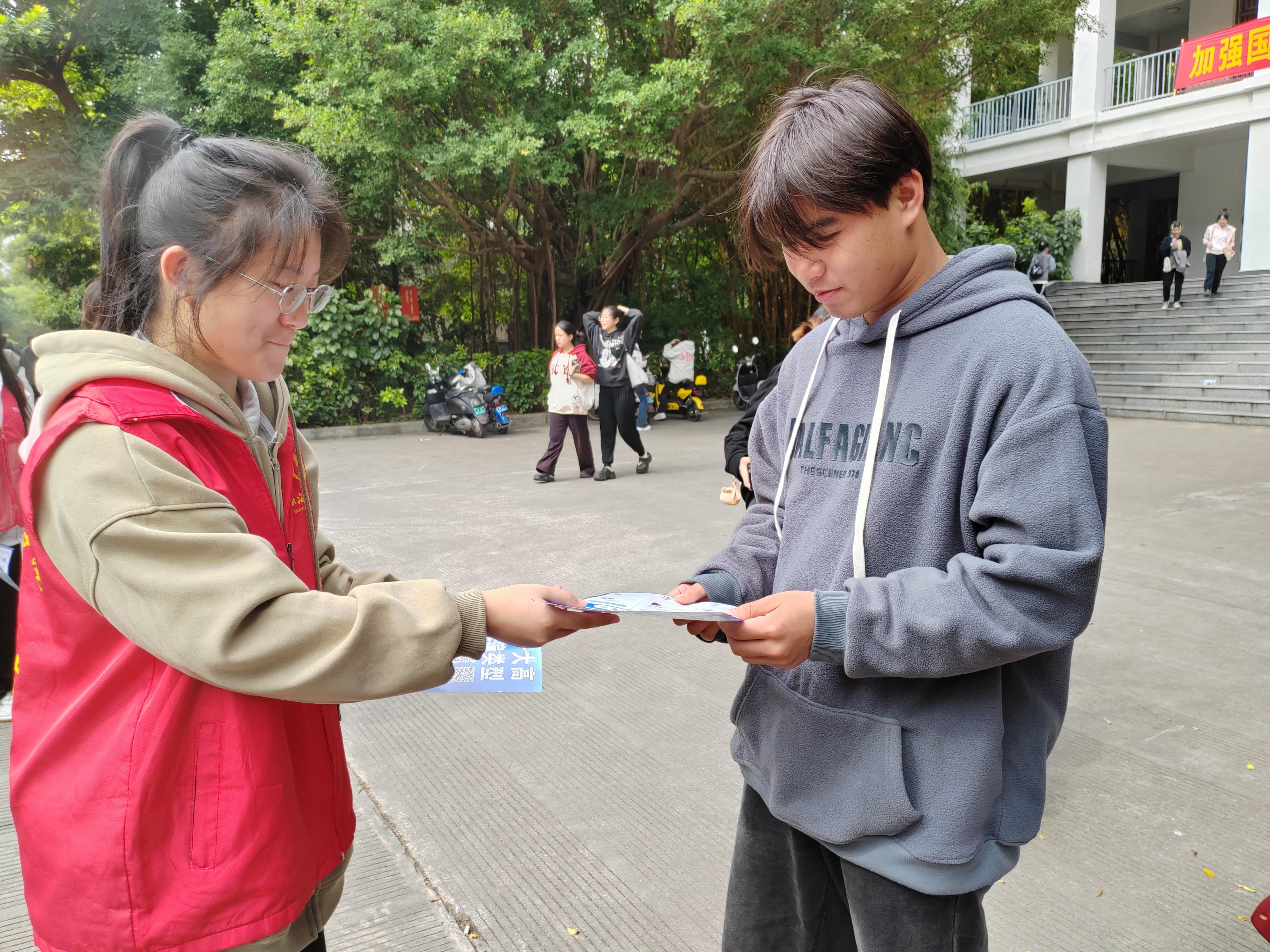 现代技术日新月异,诈骗手段花样百出。活动中,志愿者们通过发放反诈宣传单,提醒同学们绷紧防范诈骗的安全弦,告诫同学们要明确认识到任何时候任何情况下,天上都不会掉馅饼,一定要看好自己的“钱袋子”。