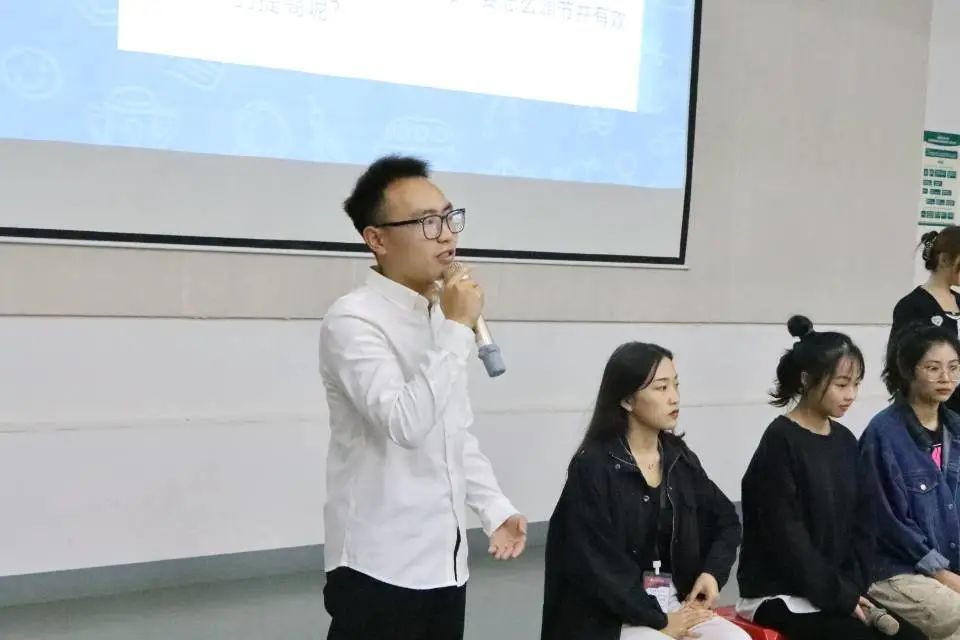 活动第五项:19、20级学长学姐上台进行分享学习经验。分别为:人文教育学院周可柔同学,动画传媒学院马妍同学。