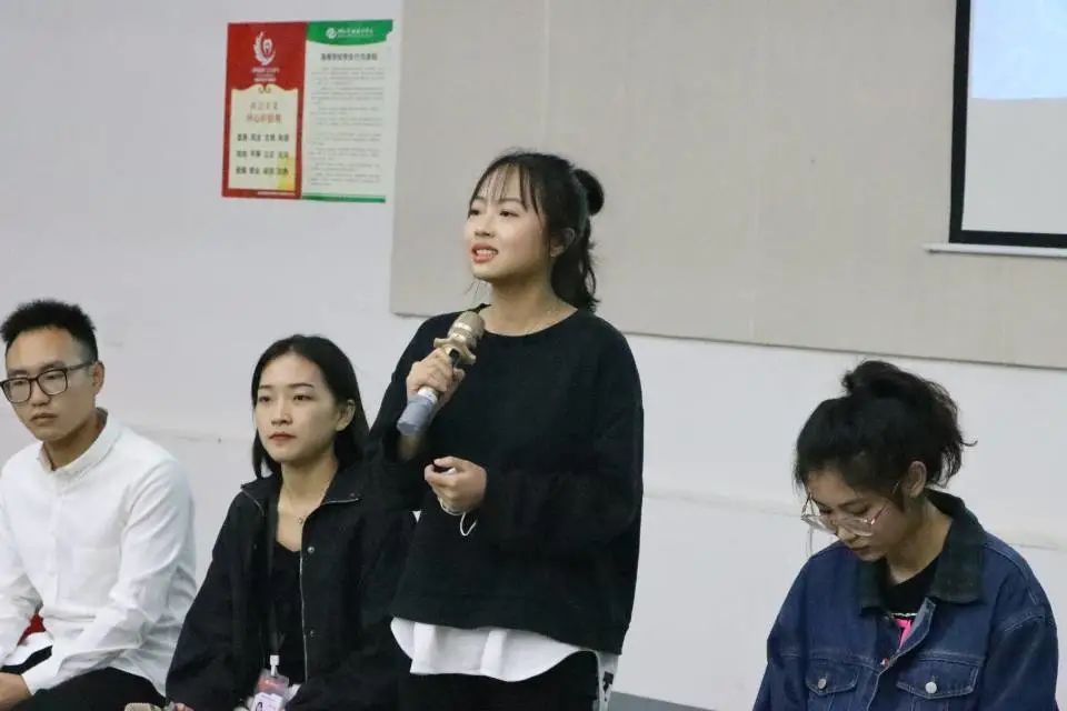 活动第三项:19、20级学长学姐上台分享学习经验。分别为:建筑与环境艺术学院应霞同学、设计艺术学院徐璐琰同学、美术学院徐进同学。